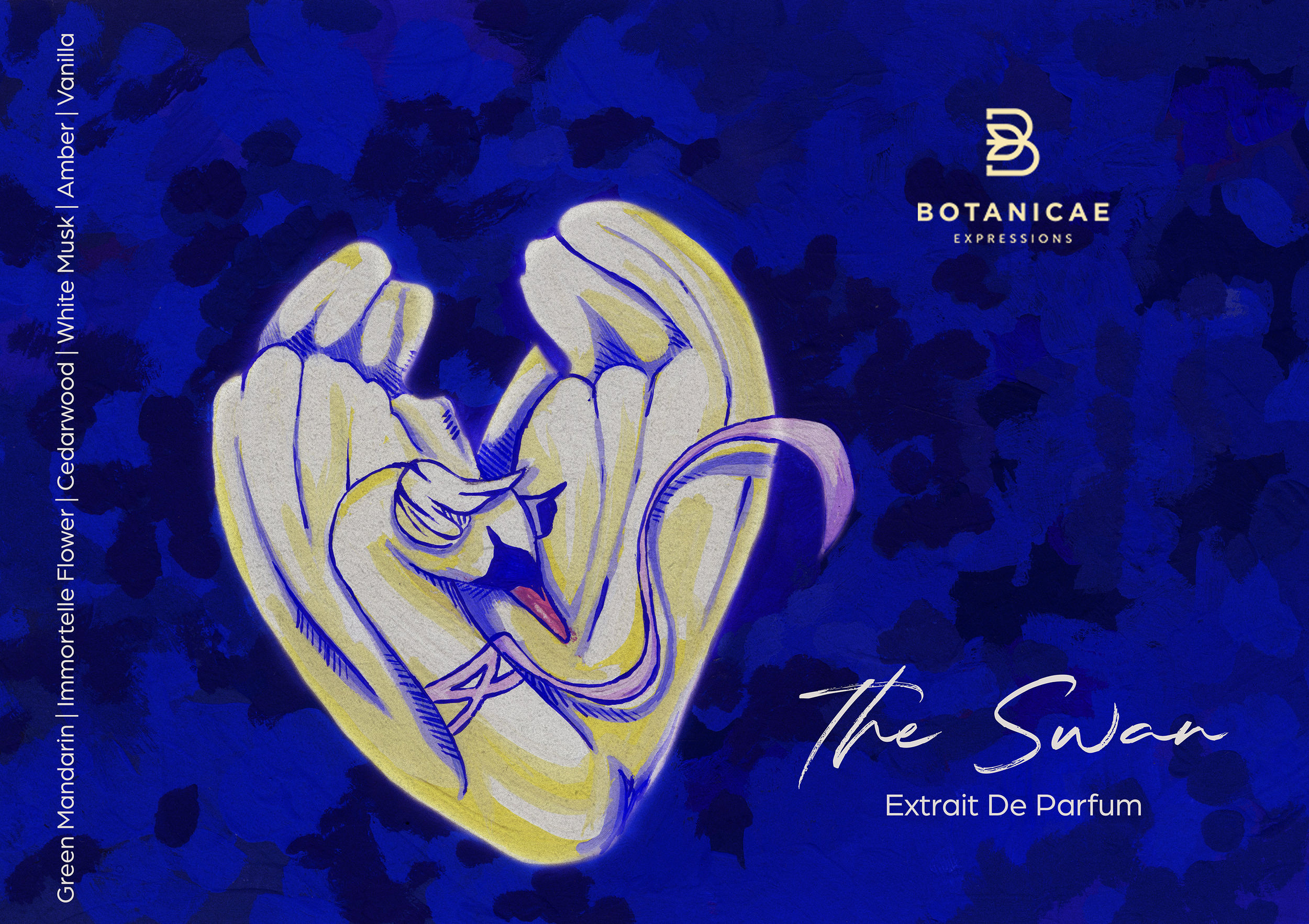 “The Swan” perfume by Botanicae was created in tribute to the grace and legacy of Russian prima ballerina Anna Pavlova, whose final performance was as the White Swan in Swan Lake. The headdress and ribbon adorning the swan serve as symbolic echoes of Pavlova’s costume. This reinterpretation seeks to celebrate both the Pavlova and her perfume. mockup