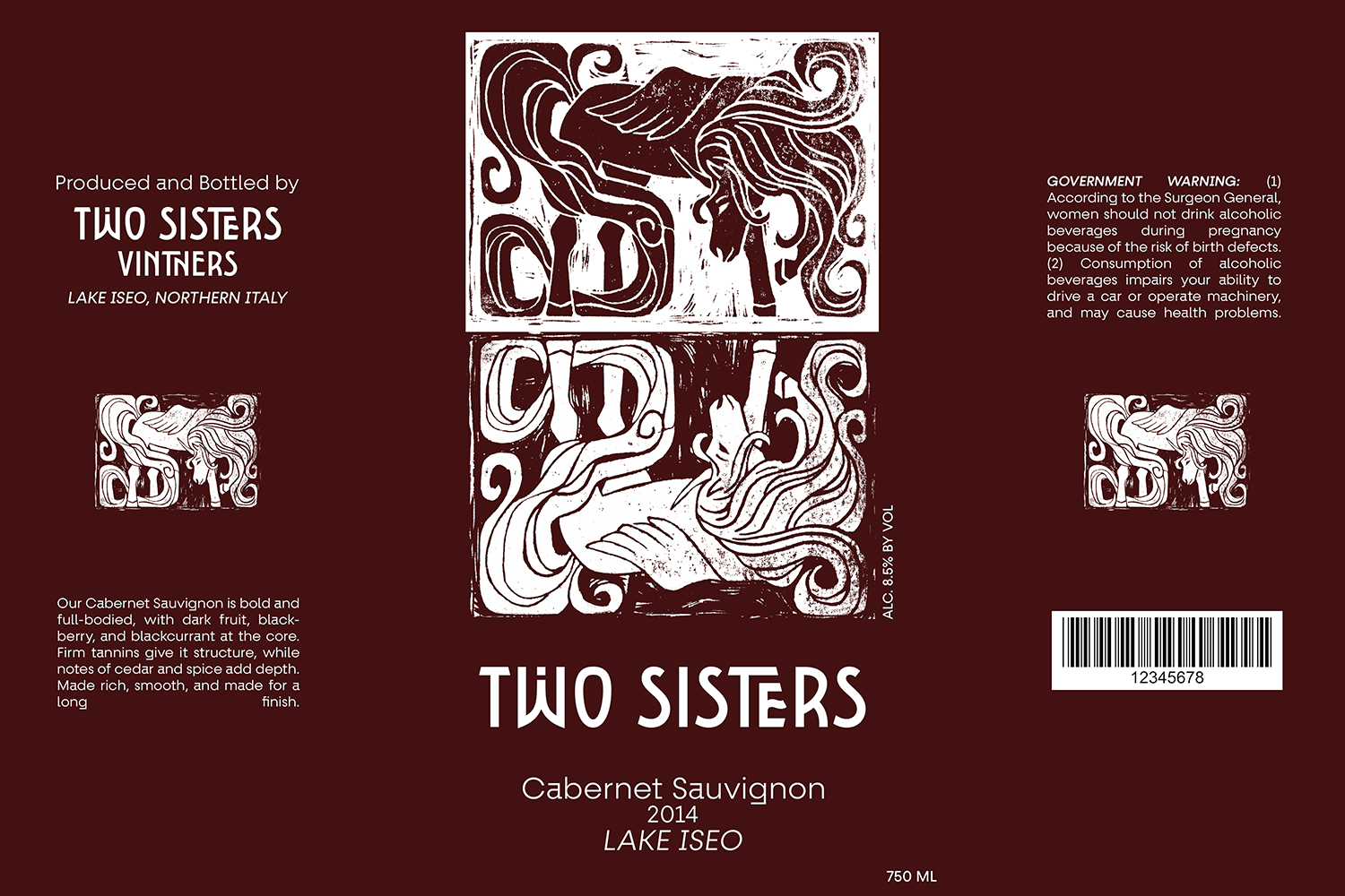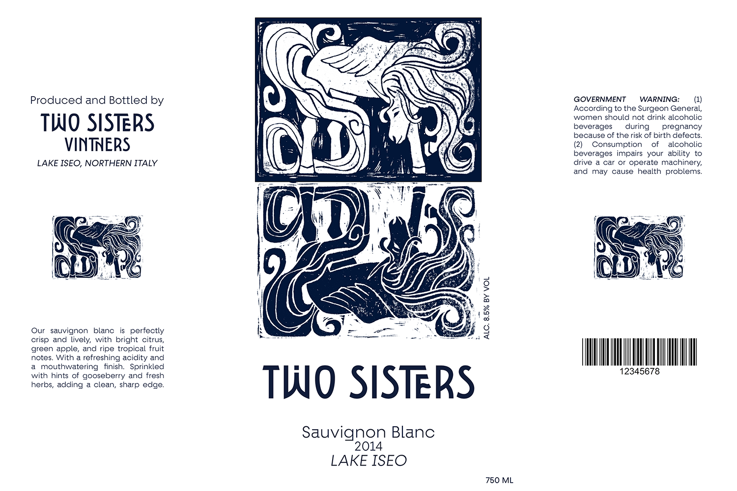 Since it’s the Year of the Horse, I thought it would be fitting to create a playful unicorn and its reflection as a wine package design. Lino printing has always interested me, and I’d like to revisit it more often as I continue exploring traditional mediums.mockups