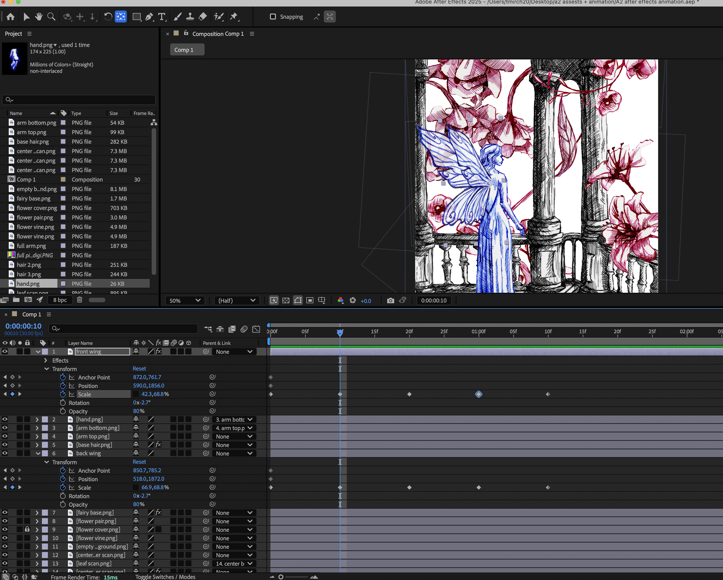 Working with After Effects for animated illustration was a daunting challenge for me, but I was determined to incorporate traditional art into the process. Using pen and ink not only proved to be a time efficient technique, but it is also one of my favourite mediums, allowing me to bring a personal, hand crafted quality to the animation while merging digital and traditional approaches.