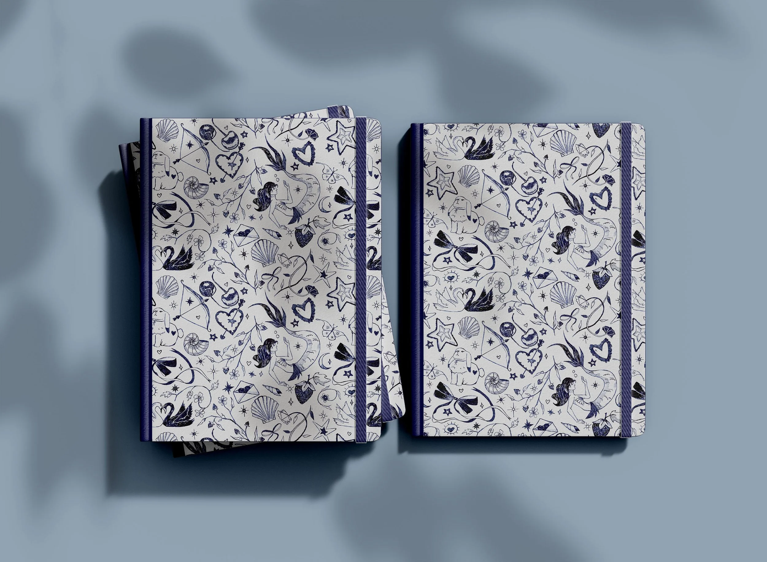 This pattern was a fun project for my materials and techniques class, where I hand-inked a cute, “girly” repeat design with motifs I’d love to see on merchandise. It let me experiment and express my personal style in a playful way.