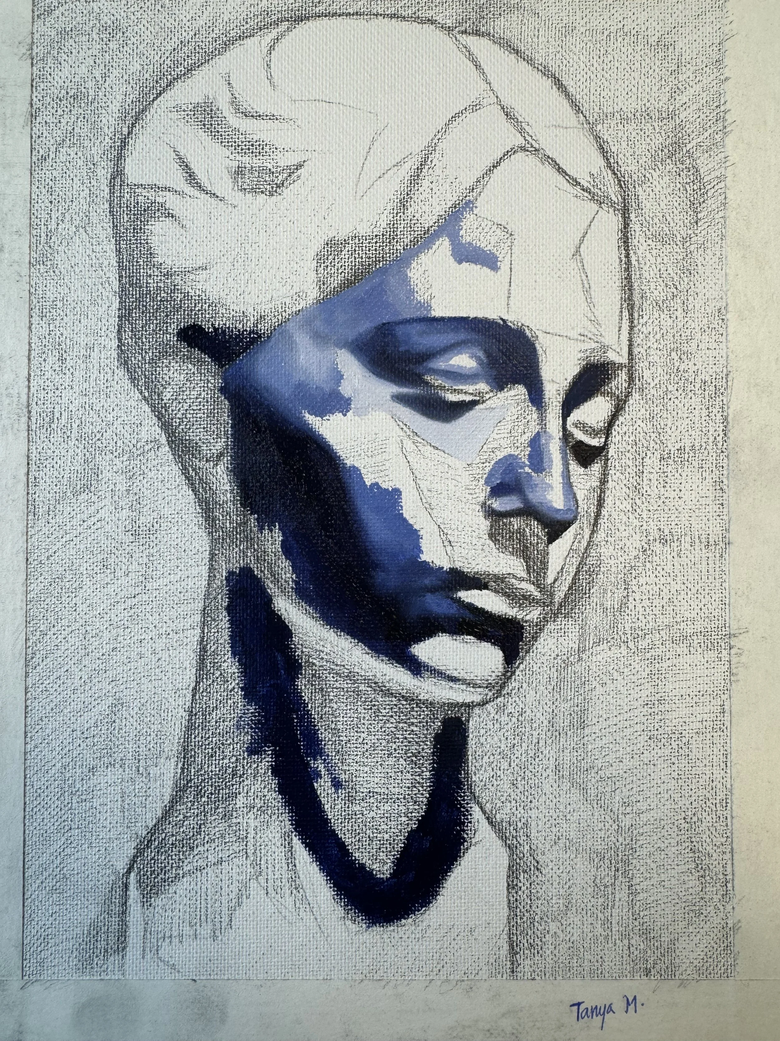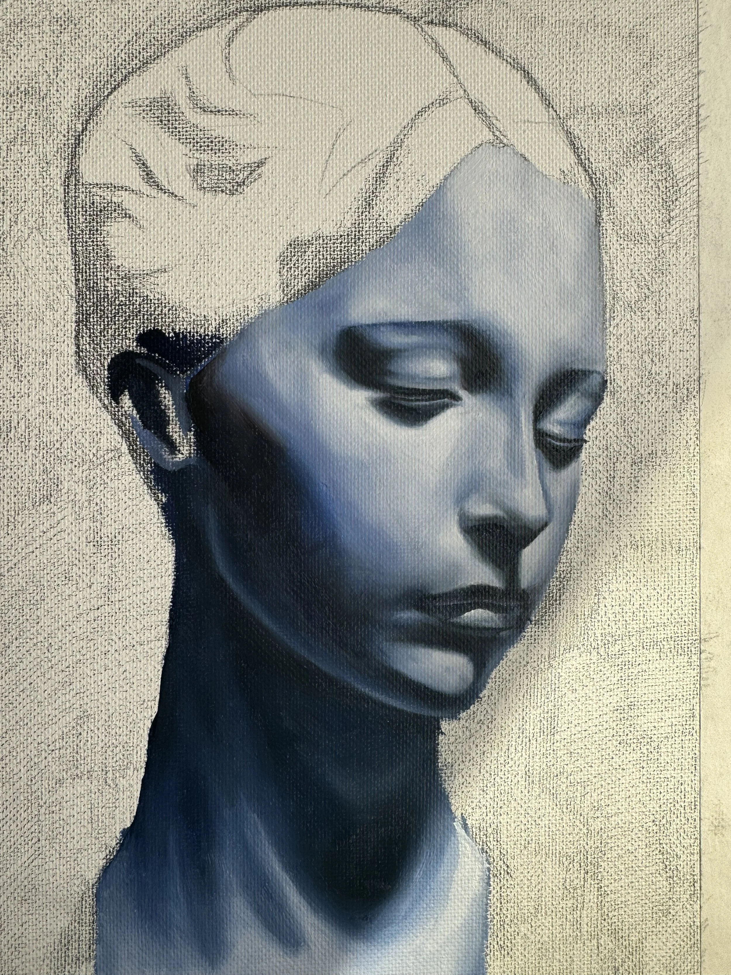 This monochrome painting was a value study done in my colour with intent class focused on light, shadow, and depth. Using a single colour helped me strengthen my understanding of form and contrast, and it was actually quite enjoyable and relaxing.