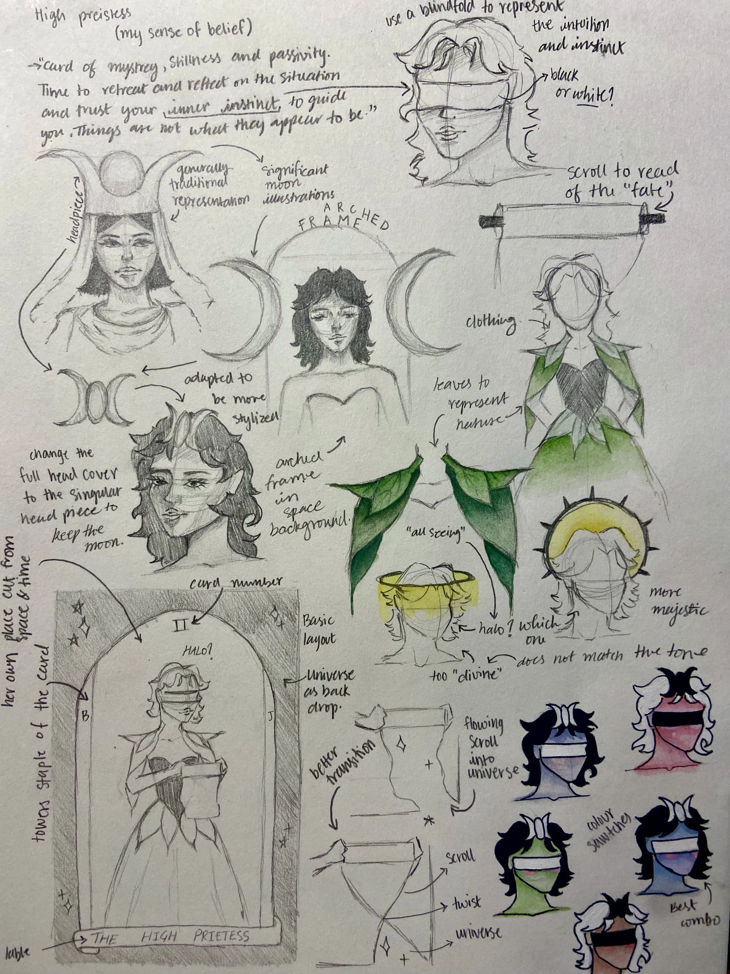 Inspired by the formal elements and composition of William Blake’s "The Ancient of Days," with conceptual influence drawn from Michelangelo, this artwork reimagines The High Priestess tarot card. I adopted a fresco technique, applying plaster of Paris over a canvas; mirroring methods favoured by both Blake and Michelangelo to introduce visual texture. The High Priestess was chosen for her associations with wisdom, tenacity, and intuition, qualities I admire and personally connect with. This piece, a component of my IB portfolio exploring how art has shaped religion, merges luminous textures and symbolic subject while emulating the conceptual processes of my artistic influences.